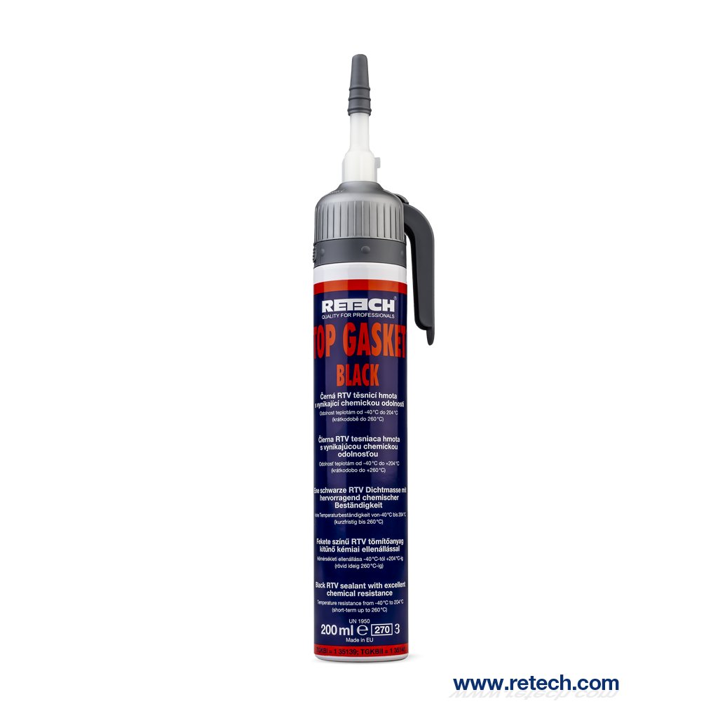 Top Gasket Black I. je černá RTV těsnicí hmota s vynikající chemickou odolností. Používá se pro mnoho různých aplikací např. pro utěsnění a lepení skříní motorů, olejových van, vodních pump, chladičů topení, termostatů, technologických otvorů a kuchyňských sporáků.